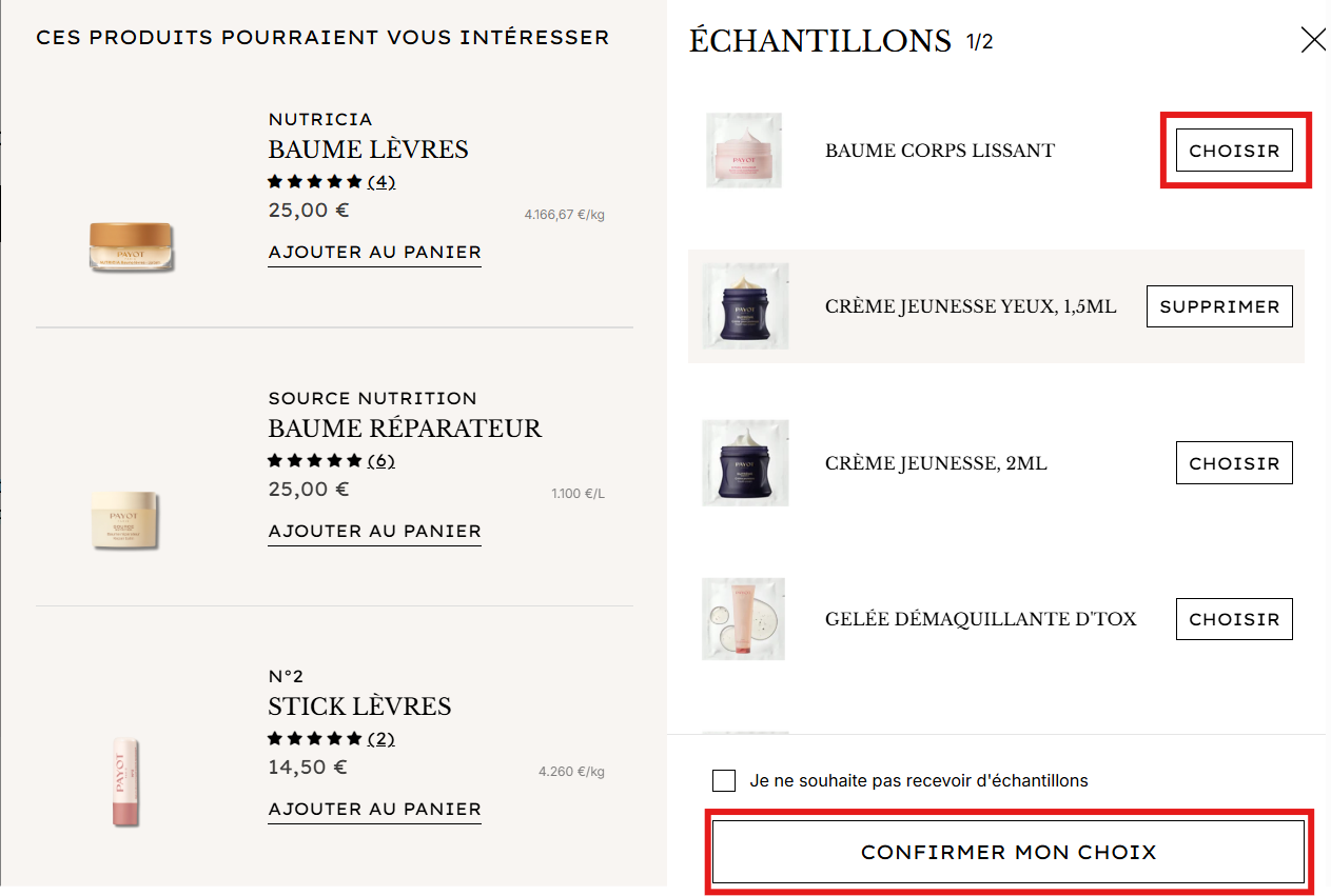 N’oubliez pas de valider votre choix en bas de la page pour que vos échantillons et cadeaux soient glissés dans votre colis.